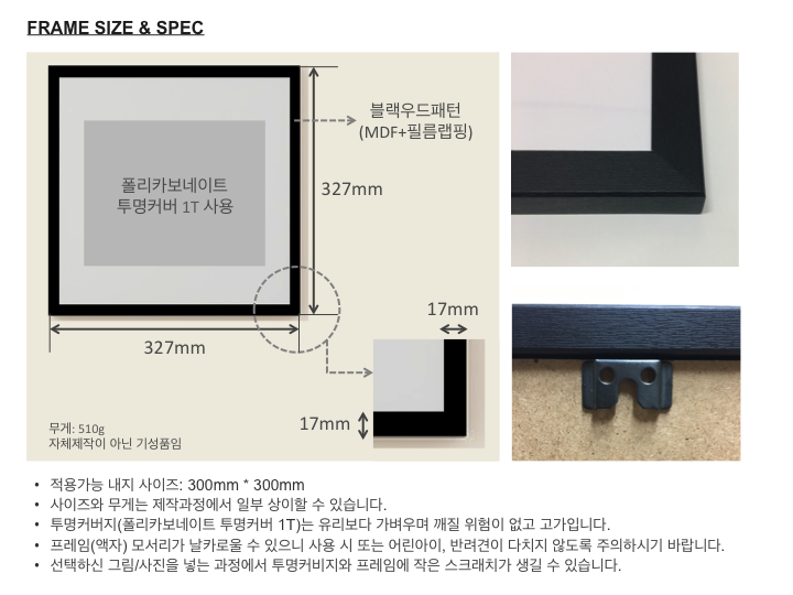 + 원본크기와 매트보드로 인해 그림/사진 일부가 잘릴 수 있고 이미지와 다를 수 있습니다.